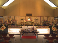 新座市営墓園には、2つの式場と4つの和室が在ります。 式場A,Bともイス席100名、和室A,B,C,Dはそれぞれ50名ほど収容でき、ご葬儀のお清め所として使用します。二つの式場は入口が別々になり、待合ロビーも専用になりますので他家と交わることなく、参列者も安心してお待ちいただくことができます。
